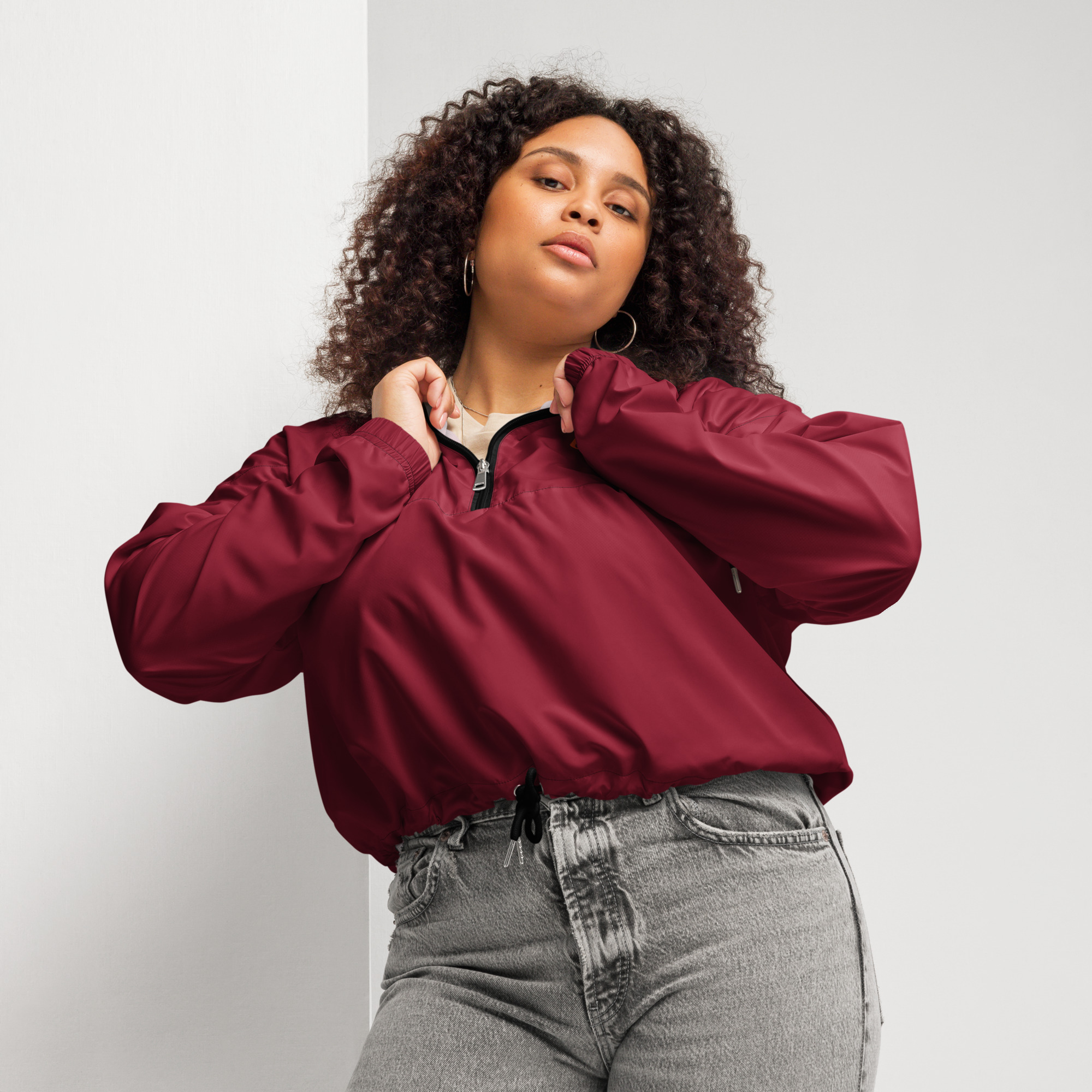 Gold Tip Cropped Windbreaker (Maroon)