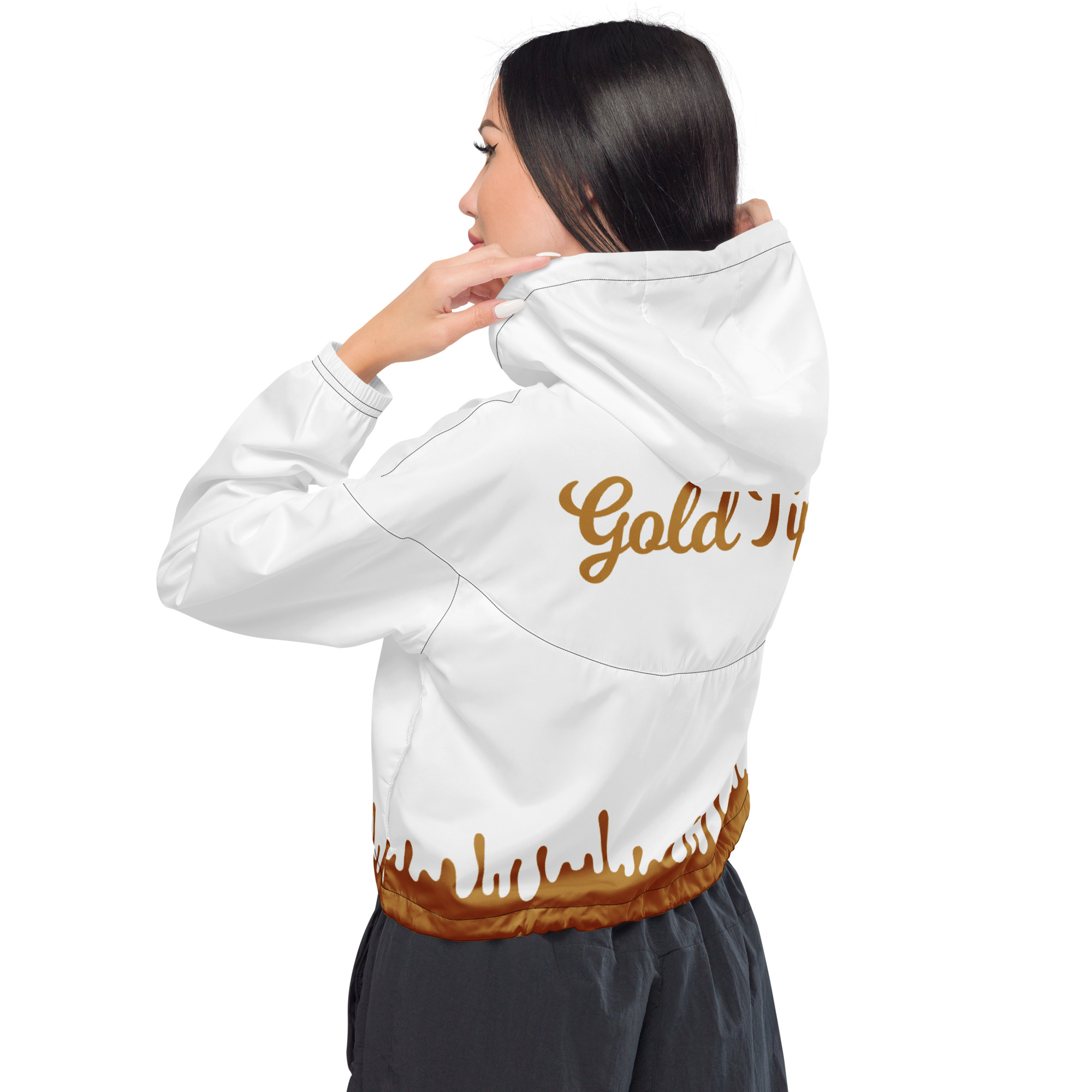 Gold Tip Drip Cropped Windbreaker (White)