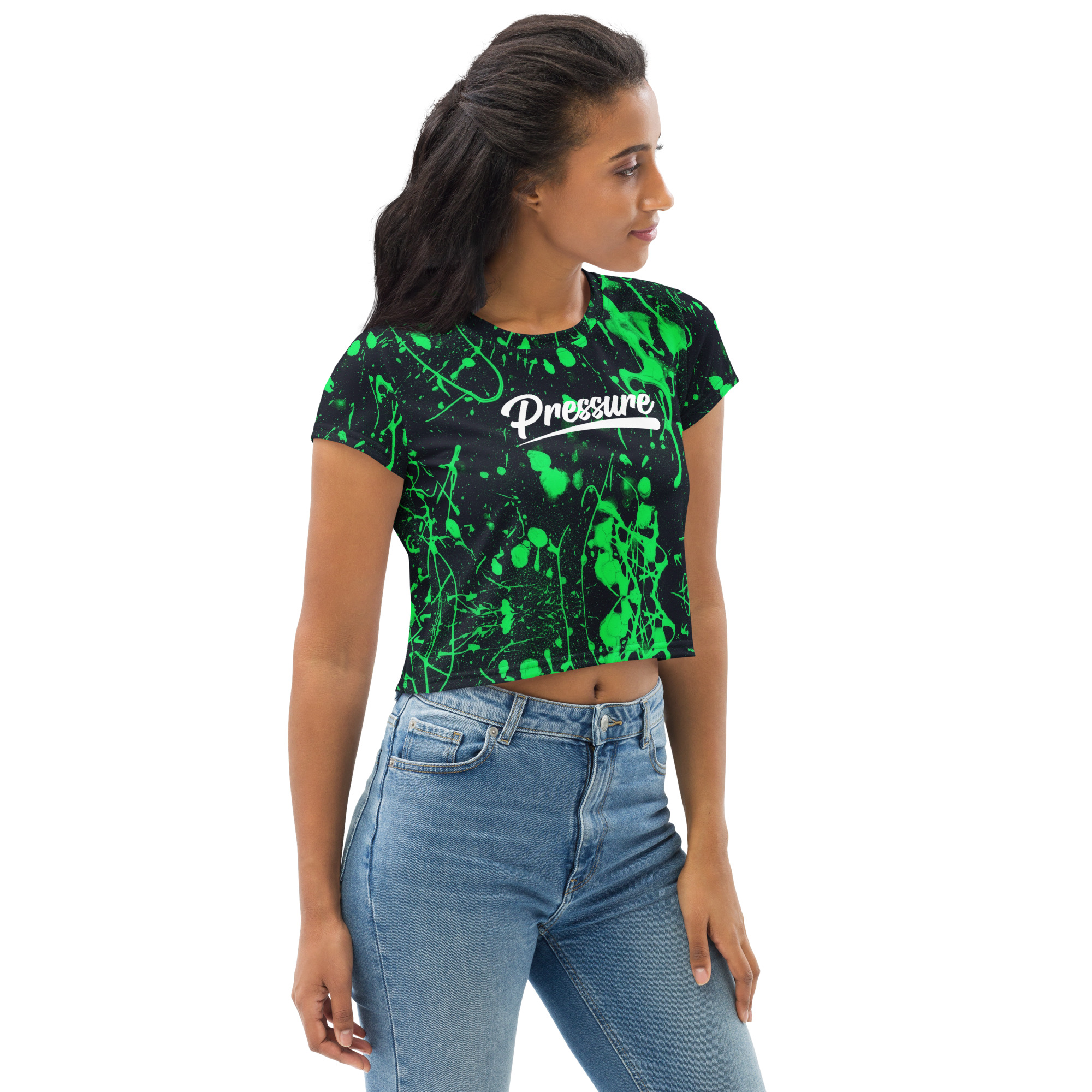 Looking for you next wardrobe favorite? Well, look no further because this crop tee is printed and sewn to fit you just right. To top that off, the original all-over design is definitely worth showing off, so don’t hesitate to own one of these tees – they’re meant to be adored.