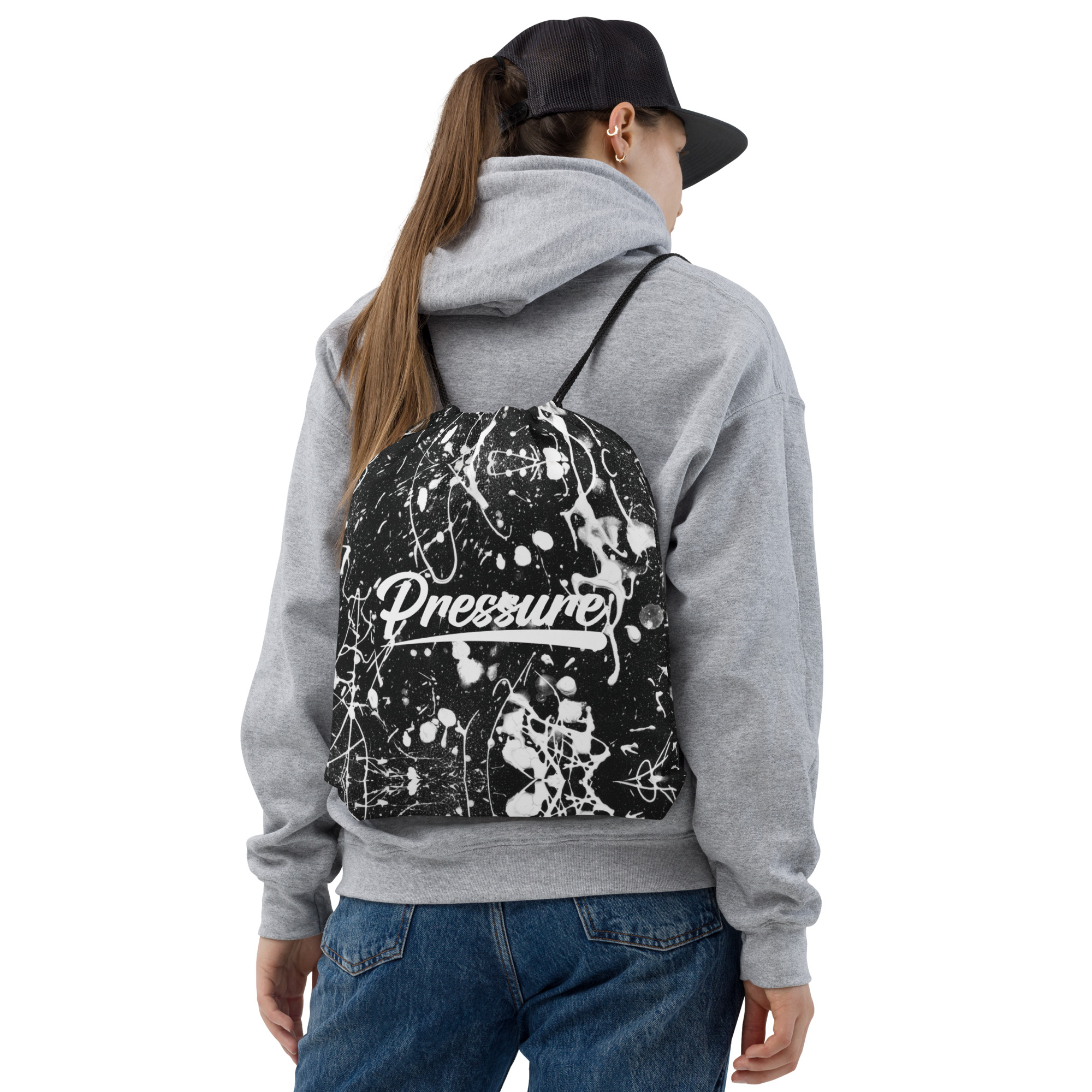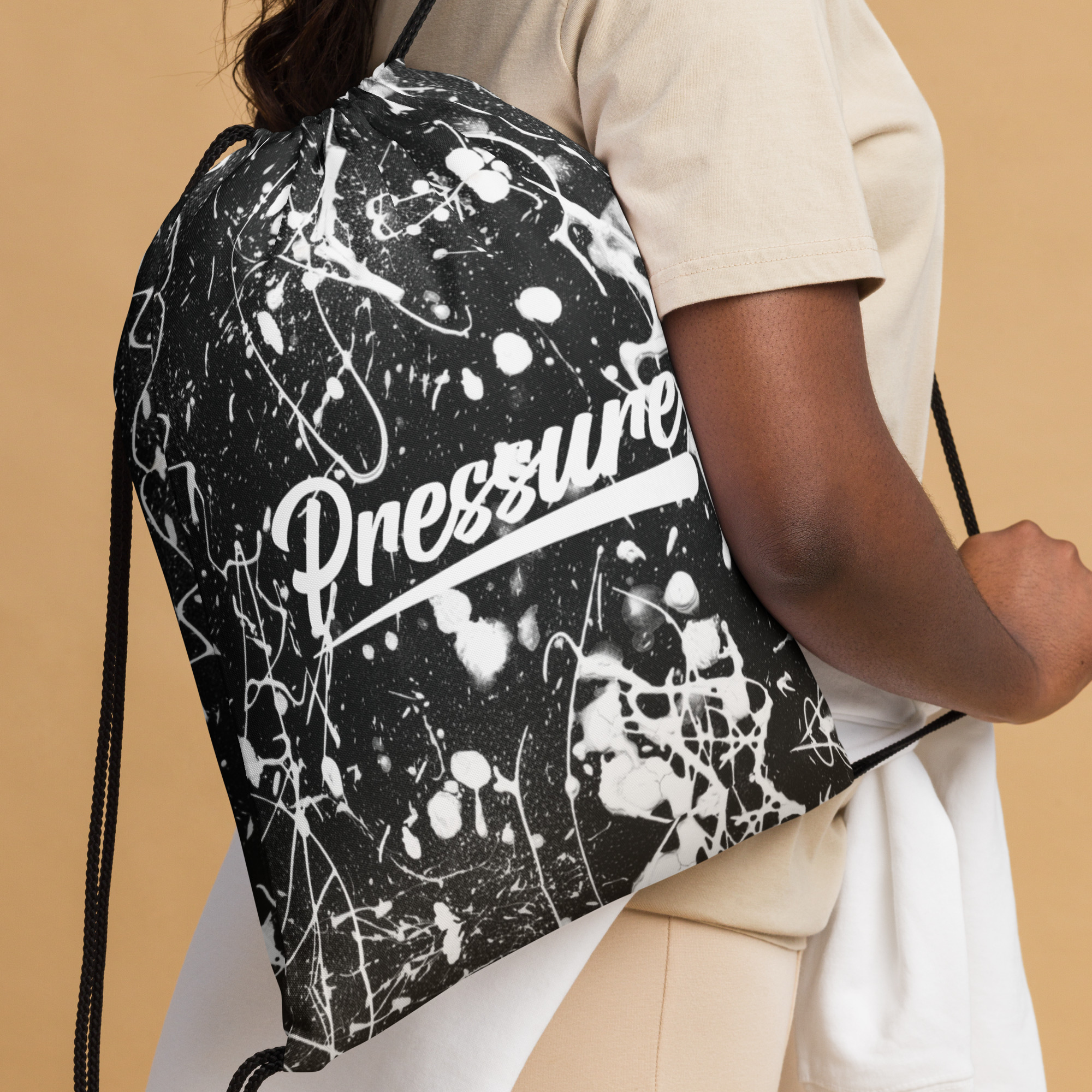 Pressure Splatter Drawstring Bag (White)