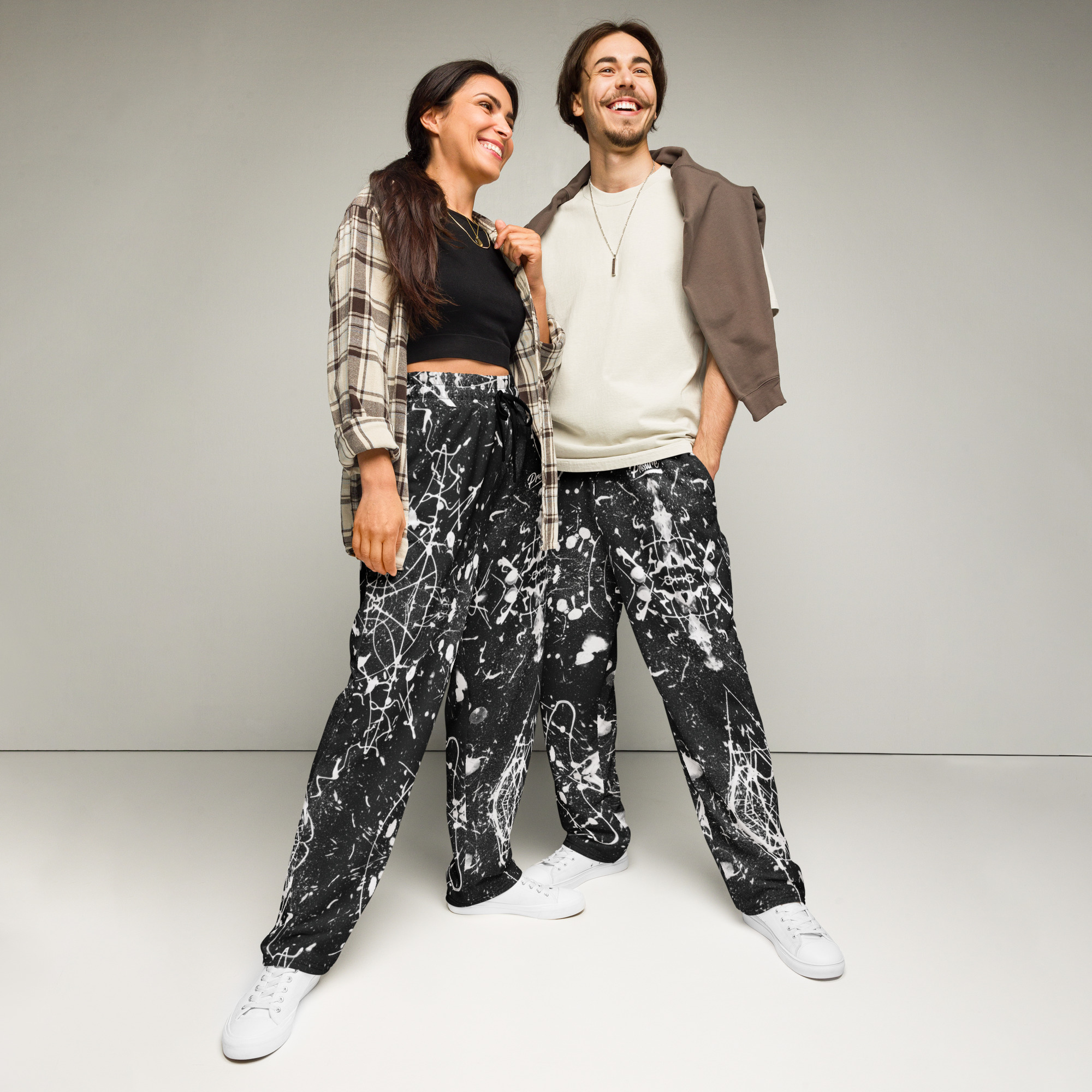 Pressure Splatter Wide-leg Joggers (White)